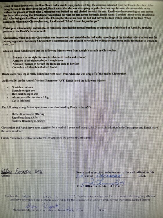 I see it all the time. Cops come, women hysterical, saying all kinds of shit. Tough guys never admit they were assaulted or deny physical pain (which is bodily injury under the assault statute) the CDC’s intimate partner violence stud shows women perpetrate assault family violence more than men Yep, see above You’re a cop Agreed, however I am calling my shot now. He will walk. But be fired/resign. Exactly. Don’t put too much stock in the PC affidavit. It never includes the “rest of the story.”