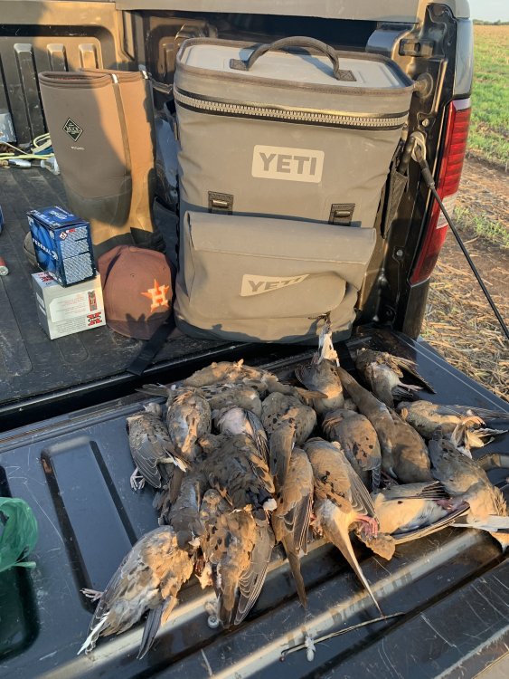 20. I finally gave up my lease this year. Been on it maybe 15 years. We used to murder the dove. White wing, mourning, Eurasian, pigeons. Tailgate hunting, no effort at all. Over the past 5 years it got worse and worse. My buddy that stayed on it reported to me today "saw four, shot one." I think I've killed three dove in one shot on this lease. No one around us has been shooting either. Corn all over the ground, it just sits there. My lease is 10 minutes from town. Used to have swarms of white wings all over my backyard. Now I see only a few here and there. I wish I had an explanation. I need a new lease bad.