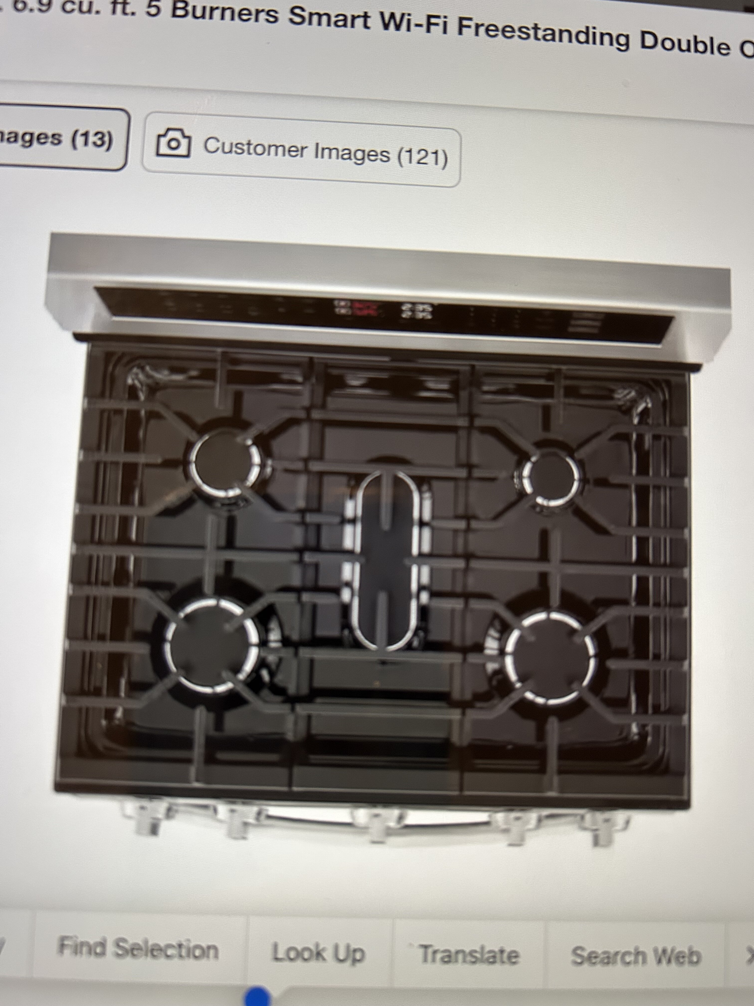 The middle burner is oblong and is perfect for heating the separate rectangular griddle: