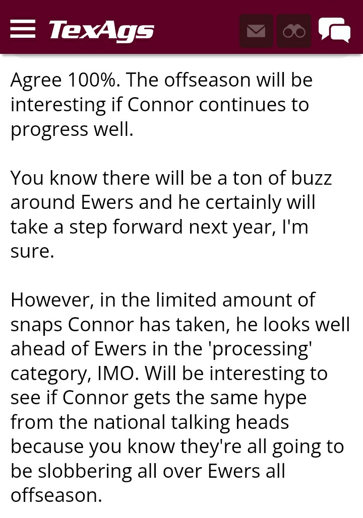 Already showing more promise and poise than Ewers, I read on txaggy. Kenny Trill was anointed the next heisman winner after USCe too, iirc.