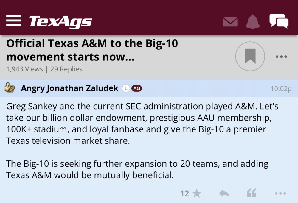 February 21, 2025Feb 21 19 hours ago, Beau Vine said: No, for Texas A&M, they called the game against the South Carolina Gamecocks— a heated rivalry, to be sure— the most important game. It's not that the game against the Longhorns isn't important, but that the one against the Gamecocks is more important. This will no doubt set off some Longhorns, who can't handle the idea of not being the most important game on someone's schedule, but I think there's a lot of truth to it. Reveal hidden contents