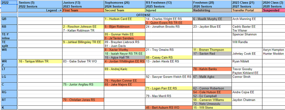 An upgraded roster will be nice. Incidentally, why didn't "the purge" begin last spring? Now we gotta hope Sark doesn't need to make any halftime/2nd half adjustments in close games.