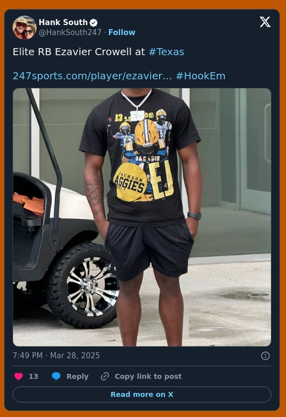 I really hope Turntine comes to Texas because I love it when we’re attractive to student athletes that actually want the student part, but he looks light and he’s not some underfed kid from Kountze that’s going to put on 40 lbs in year one just because he has access to a dorm buffet and a badass gym (if those kids even exist anymore outside of rural Mississippi).