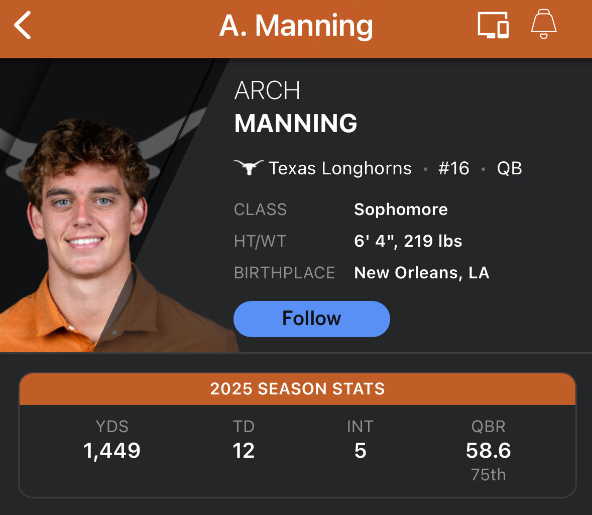 No. It is based upon the fact that there are literally dozens of highschool QBs that would be better than Arch right now. We would have to completely miss every QB eval to end up with one of them not being better than Arch. It is frustrating because clearly Arch has the talent to make big time NFL throws, and he does it fairly regularly. But he combines that with inability to make any basic throws or reads. He just isn't playable when it is like this. Arch may one day be a good QB. He just isn't capable right now. I hope at some point it clicks for him. But year 3, and 7 games into the season, Im just not seeing a growth trajectory. We are right back to UTEP level of play from him. How do you not see this?