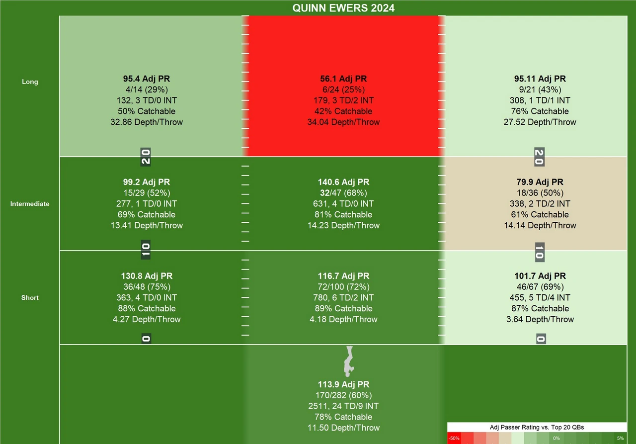 no, the stats say how quinn ewers performed throwing intermediate passes last year.