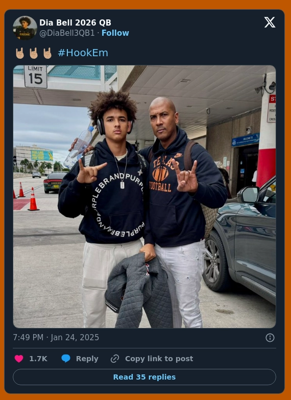 Bell joined the Longhorns' class last June. He was Texas' top priority at the position, and remains QB1 in the 2026 class in UT's eyes.