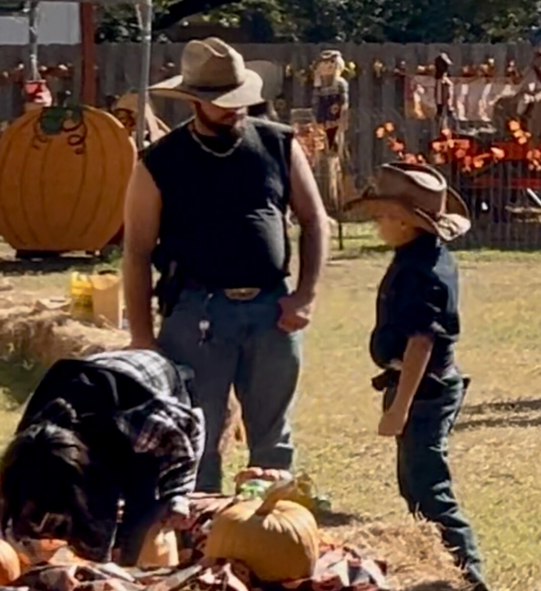 just went out to the pumpkin patch at the methodist church in taylor, tx and saw a nine year old boy open carrying a small pistol on his right hip in an expensive holster, and a knife on his left hip, same as his dad, who you already know had on shades, a mustache, a sleeveless t shirt with an american flag, and a scowl. fuck these people.