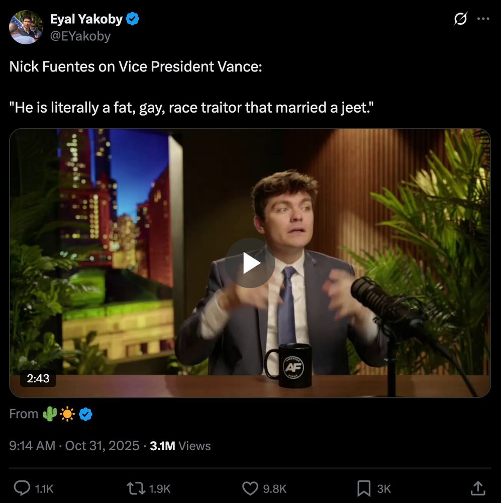 I love this for the sofa fucker. Also hopefully it will bounce right back at the very gay nazi Nick Fuentes.