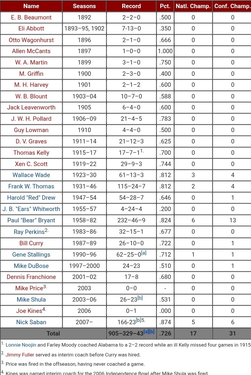 You're correct, it is similar to Texas in having shit coaches aside from Saban in the past 30 years. It is not a coaching destination. Wasn't before Bear and hasn't been since.