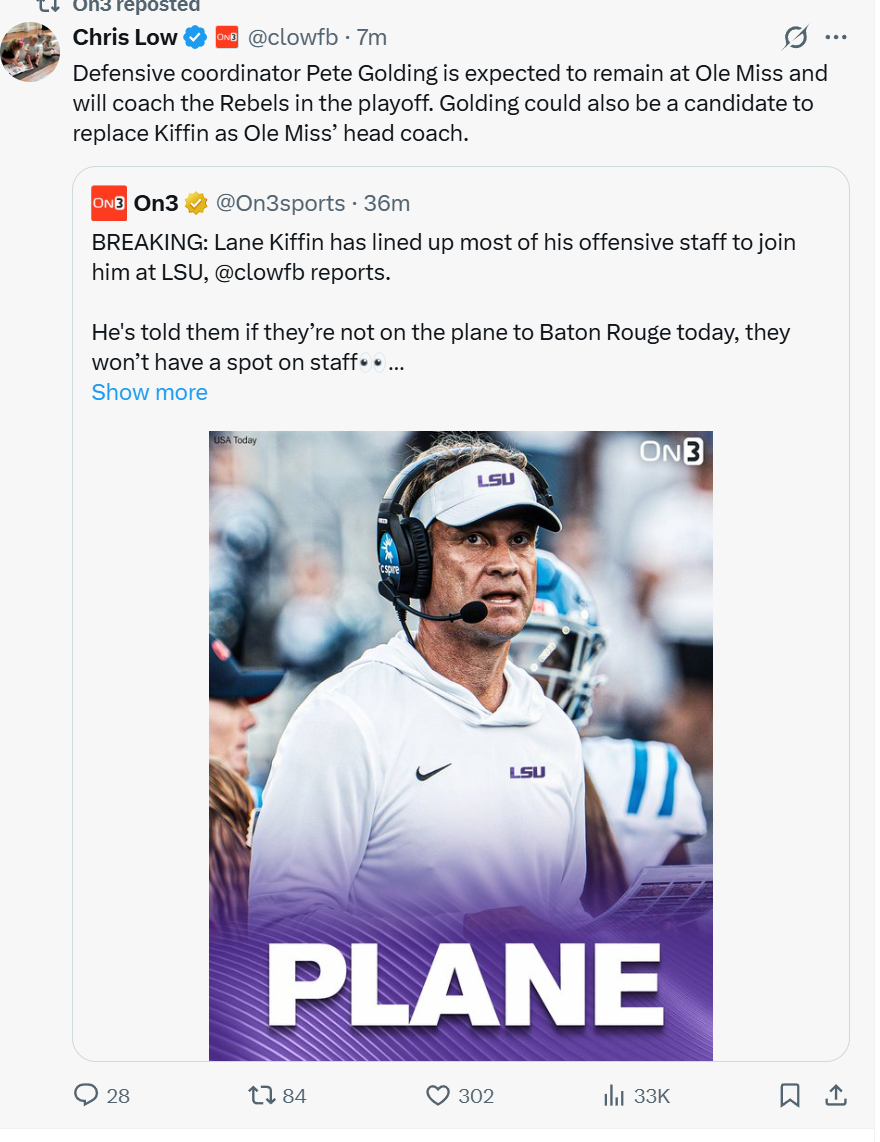 I wanted Sumrall and wondering what happened there. Grew up in Alabama (same high school at different times), wife graduated from Auburn etc.  Guessing with no evidence that Florida money whipped him and Auburn wouldn't match. However it looks like we keep the DC and his defense was pretty good this year. The offense was a dumpster fire until Freeze was let go. There is some talent there if they can get anyone for the OL.  I can't remember the exact details but the last few years of Malzahn and Harsin had a total of something like 7 (yes seven) total OL in 5 years. Freeze improved on this but it was so deep in the muck that it still effects us. All the new guy has to do is establish the offense.