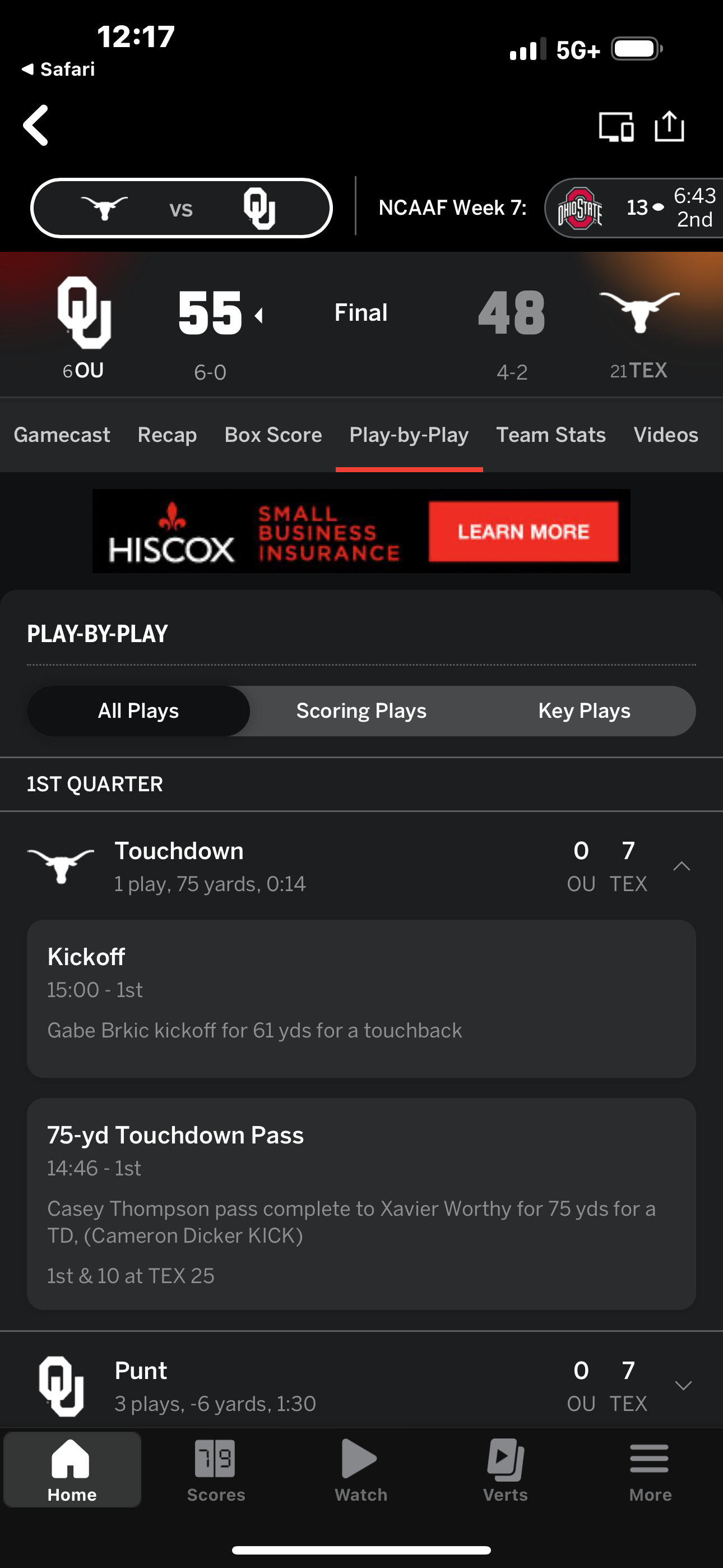 Kansas in 2016 and blOU in 2021 are the two games I remember where we scored a 75-yard touchdown off of a screen on the first play of the game.