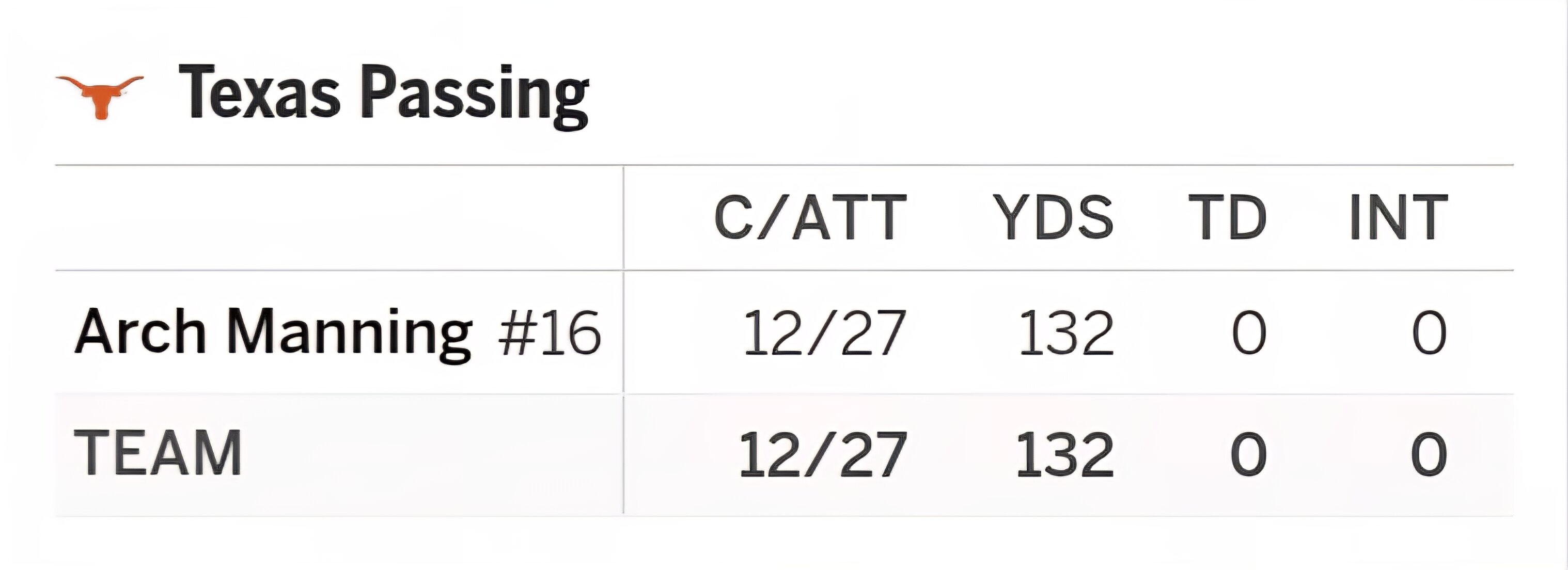 Are there issues with Arch absolutely. Is it delusional to think that changing QBs is gonna fix the shit show of an offensive game plan. Absolutely. Will benching Arch potentially fuck up current and future QB commits? Absolutely. Will it lead to Arch entering the portal to find a OC and HC that know how to actually create an offensive game plan that aligns to his talent? Quite possibly. Will it make Texas look even worse among the talking heads, prospect recruits and others if we bench a Manning for a guy who didn't start at Troy and we continue to flounder due to an inept OC and offensive game plan? 100%