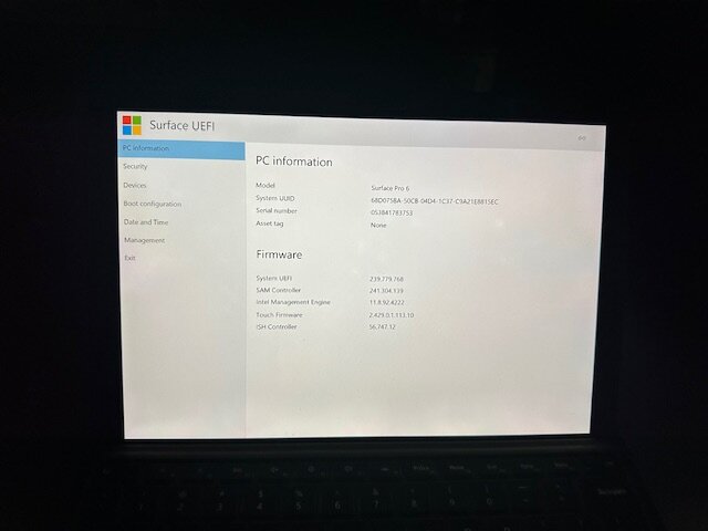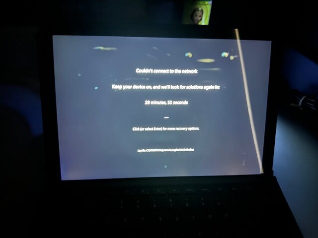 When trying to reboot, it is just showing the restart screen on a loop. Eventually I was able to get to the Surface UEFI screen, and after trying to reboot from there am getting some type of "Network" error message (but it just continually goes through that loop as well).