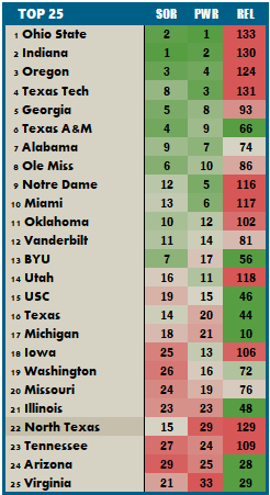 That third column is a math thing, not a team thing.  It's a measure of how possible it even is to power rank / eyetest your team based on the quality of matchups played over the season.  It's kind of what I'm wanting to show given this new era of football, conference size, and the concentration of talent.  The top 6 Power teams are all 100+ in reliability, and I really think we are flying blind into the playoffs this year more than others.