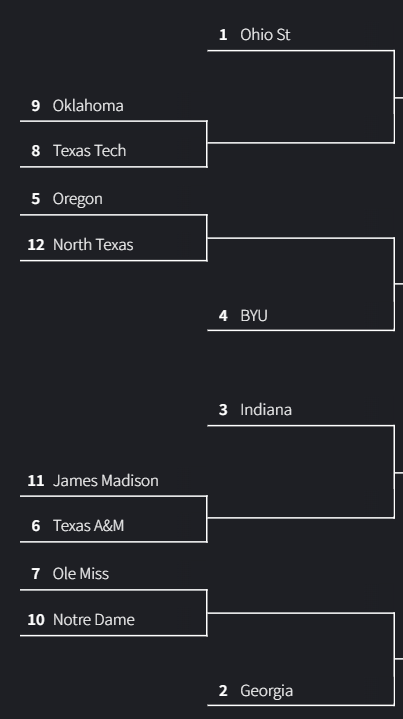 tOSU, Indiana, Georgia, Texas Tech, Oregon, Ole Miss/a&m