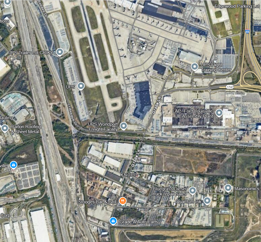 Muhammad Ali International Airport in Louisville, Kentucky is currently closed to arriving and departing flights, following the crash of (UPS2976), a McDonnell Douglas MD-11 being operated as a cargo plane by UPS Airlines that had just taken-off from the UPS Worldport in Louisville. A massive fire is currently burning near the airport — engulfing several nearby buildings — with a shelter-in-place order having been issued for a five-mile radius around Muhammad Ali.