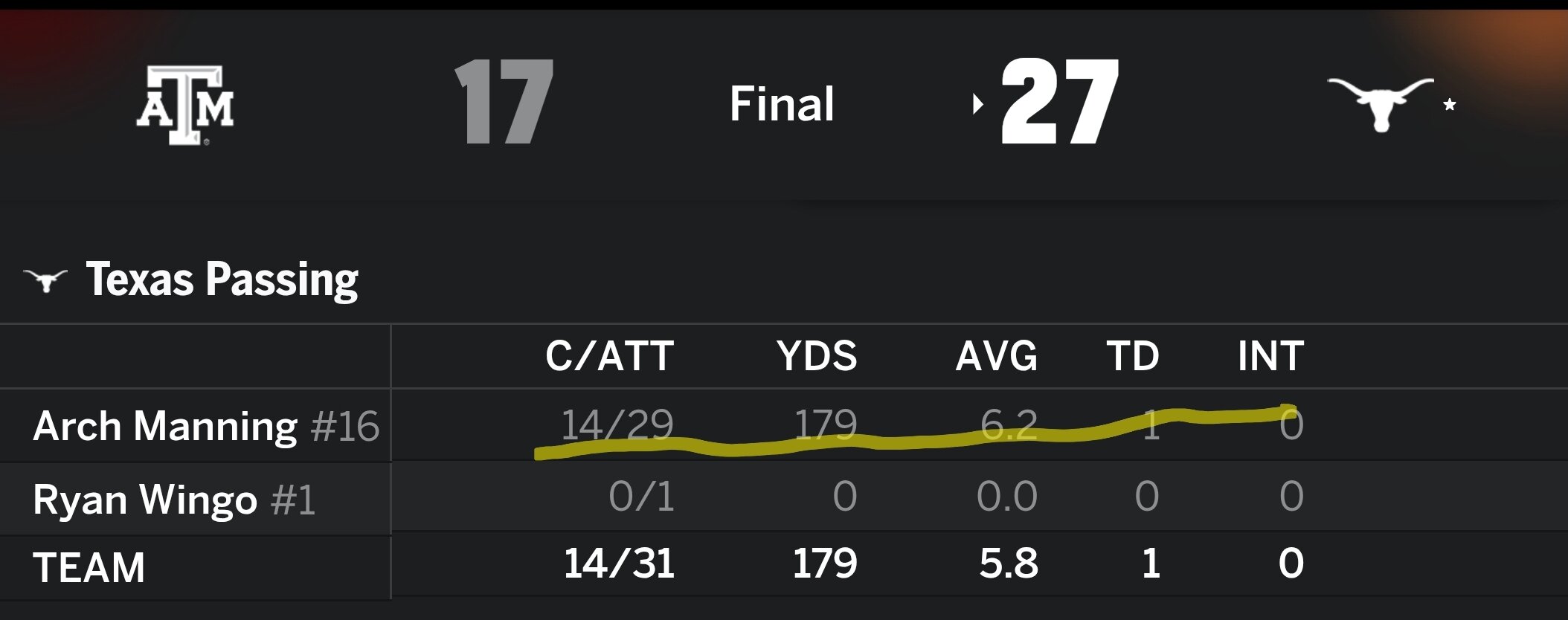 Agree 100%. Yeah, we're peaking, but at the end of the day we can't play down to teams. We just can't and then throw out a meaningless stat that they can just throw back in our faces. I'm grateful for 9-3, and like you, if we make it, awesome. But also, agree we aren't winning it, and I don't want a consolation prize. I want to know my team can win it. The recruits havw eyes. If we make it they aren't magically changing their minds for making the CFP. They've seen the bad and the good. They see Arch is going to be really good, not of we make it or not.