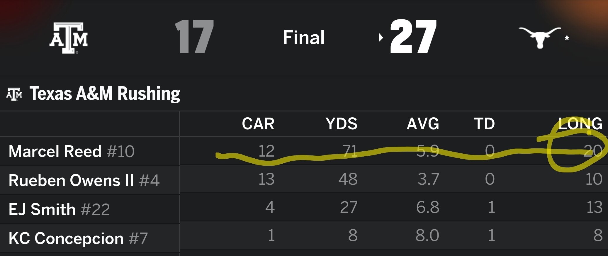 There weren’t many 4 yard carries. Of those 19, felt like 15 were either loss of 2 or 10+.