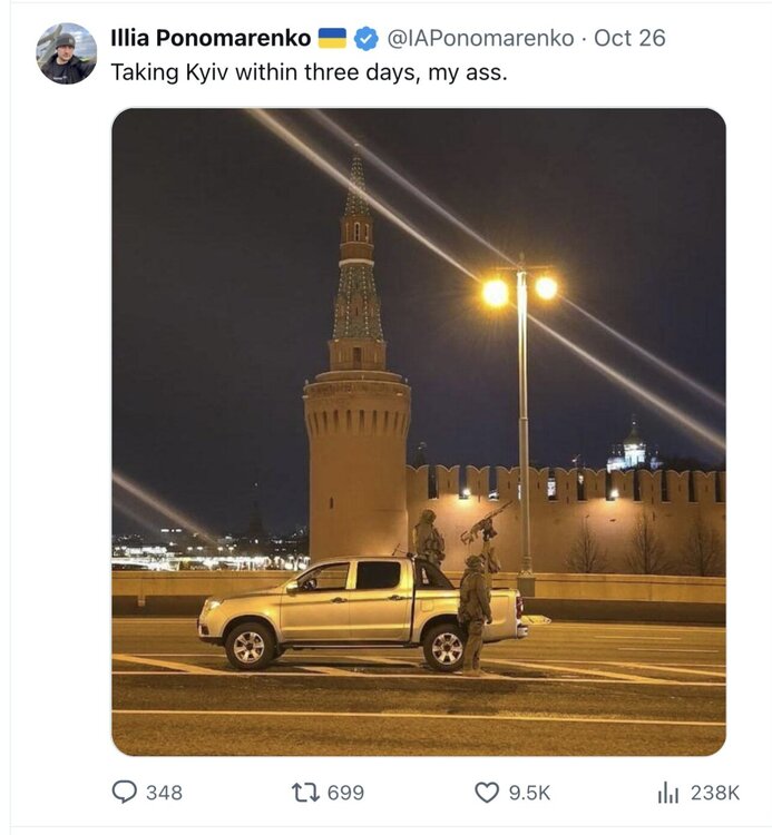 I'm thinking Zelensky is dead, captured or on his way out of Kyiv.