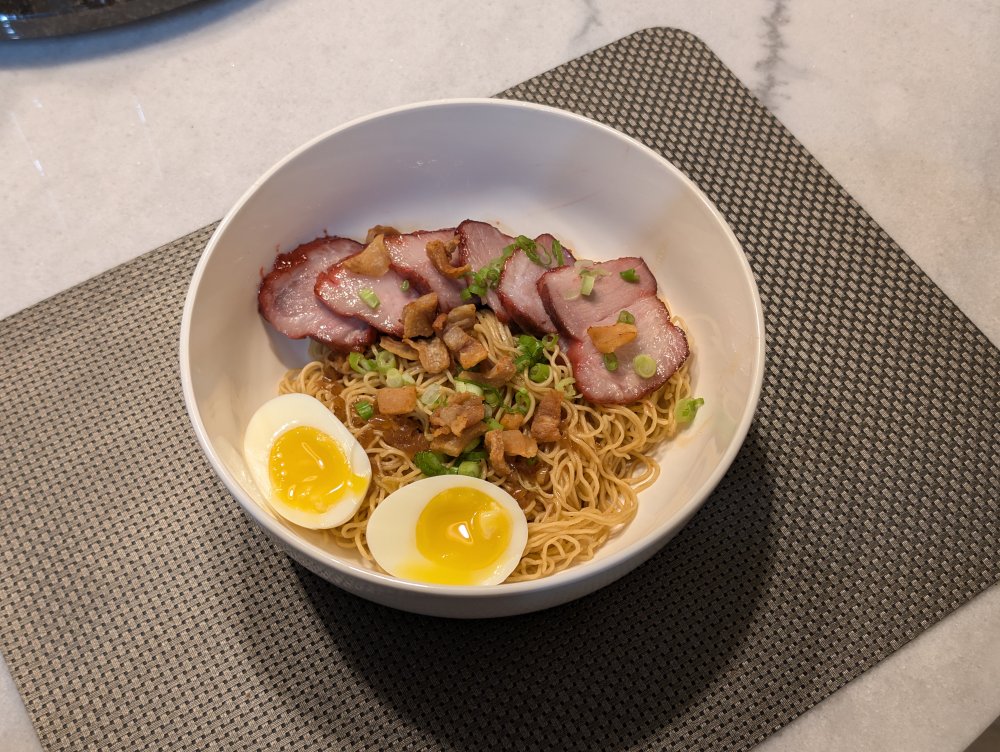 Chinese roasted pork belly or siu yuk.  Gotta get the crunch on the skin perfected