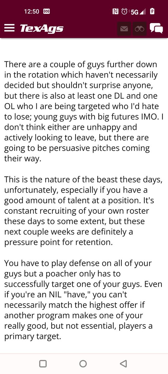 4) Schools are going to lose guys that they don't want to lose. It won't just be ATM. There is a high likelihood that Texas will be impacted too. Texas now has a talent rich roster and a lot of mouths to feed.